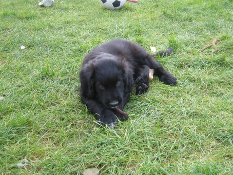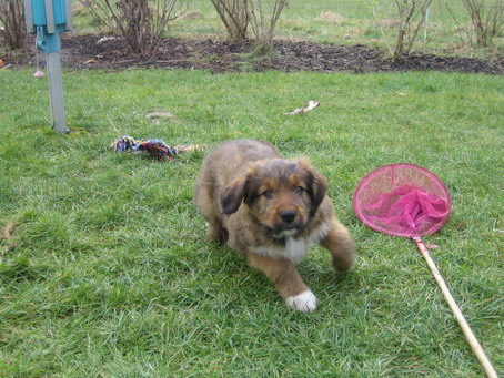 Ich habe alle Welpen auf die Hundepfeife konditioniert, indem ich bei jeder Fütterung einmal auf der Pfeife pfiff. Auf die Hundepfeife hören also alle Welpen und kommen sofort angaloppiert, wenn der Pfiff ertönt. Die kleine Hündin der neuen Welpenmama hört sogar auf den Teekessel!!!