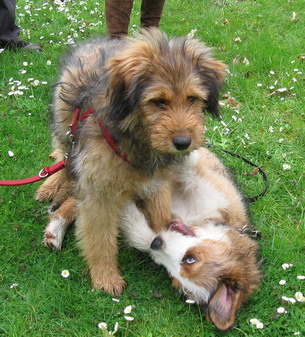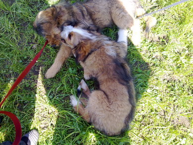 Die Welpis sind jetzt 4 Monate und ein bisschen. Lalita kugelt sich mit ihrem Bruder Joker. Sie hat eigentlich den ganzen Tag nicht viel anderes gemacht...